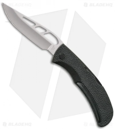 The E-Z Out Skeleton folder features a bead blast finished blade with cutouts that are not only stylish but facilitate one-hand opening. When open the sturdy lockback mechanism keeps the blade safely locked. The glass-filled nylon handle features Softgrip inserts, which keeps this folder firmly in hand. The E-Z Out Skeleton has a tip-down pocket clip.